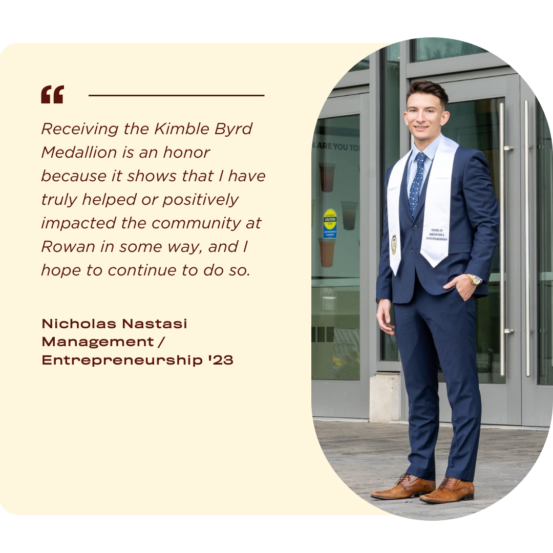 The Byrd and Ross Medallion Awards are prestigious awards bestowed to Rowan University seniors who give back to the Rowan entrepreneurship community and demonstrate perseverance along the way.