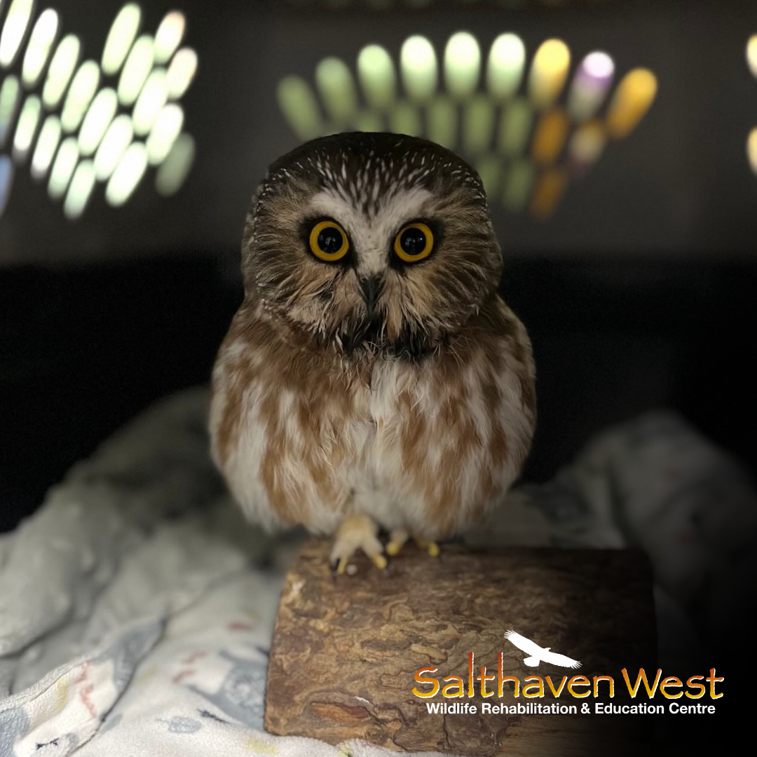This is an adult Northern Saw-whet Owl that was admitted to Salthaven West after sustaining head trauma from a window collision. The owl received care for over a week, during which it was treated with anti-inflammatory medication and underwent gentle daily physiotherapy. Thanks to these efforts, the owl made a complete recovery and was successfully released back into its natural habitat. Read later on how you can help Salthaven West