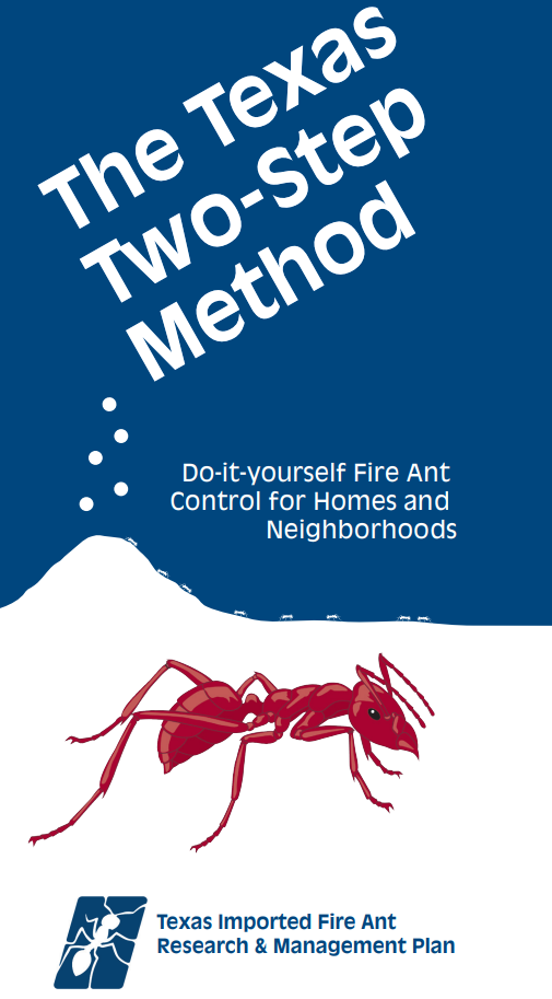 Whether you are new to the area or have been here a while you have likely experienced fire ants. We recommend following a research-based method for controlling fire ants in your yard. It is called the Texas Two-Step Method. First, broadcast a fire ant bait over your entire lawn. Baits (food combined with a slow-acting insecticide) are designed to be carried by foraging ants back to the queen and underground nests. The second step is to treat individual mounds with a fire ant insecticide. Utilizing both of these steps can successfully control fire ants in your yard.