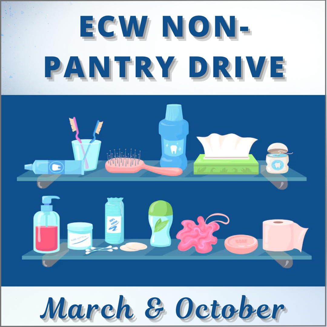 The Episcopal Church Women (ECW) sponsor a pantry drive twice a year in March and October for Emmaus House for items not covered by SNAP.