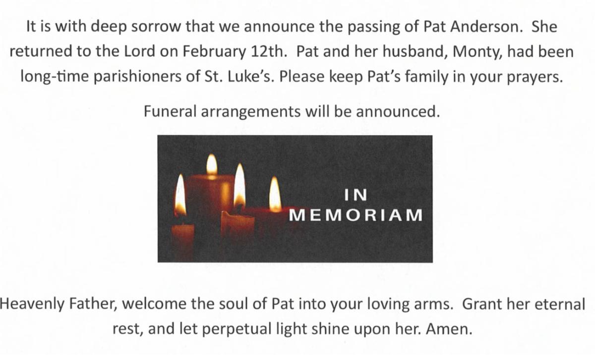 For the repose of the soul of Pat Anderson.