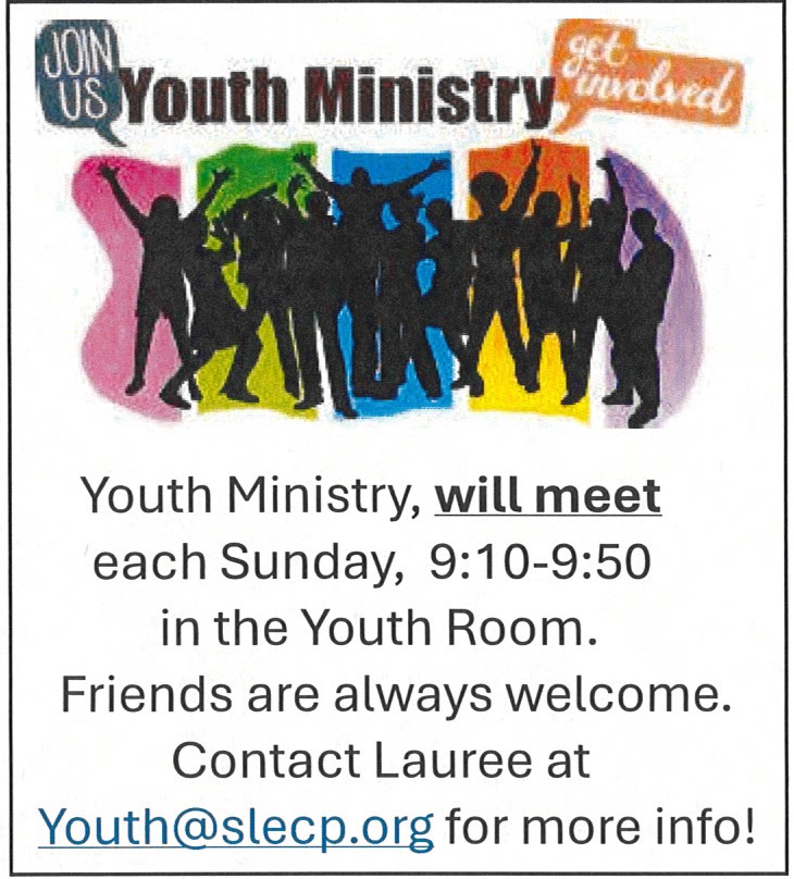 Can't make it to one of our services? Follow the link to our website (slecp.org) to watch live or stream later, and download the bulletin