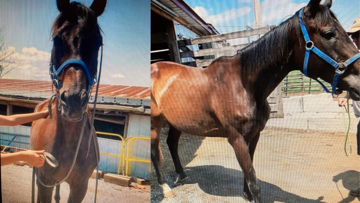 “This is yet another example where those responsible for starving and neglecting their horses are rewarded for their bad behavior by selling them to slaughter and making money, rather than being fined and charged with animal abuse,” said Equine Advocates President Susan Wagner. “I hope that we can find out how this horse ended up in a kill pen. CJ had a high fever when he got to quarantine which has since been reduced to normal after receiving two shots of strong antibiotics. It is also apparent that he has not received dental care in a very long time since his grain falls from his mouth as he tries to chew it. His feet and hooves have also been severely neglected. Our hope is that all the health issues he has will be diagnosed before he gets here so that he can be treated for them and continue down the road to recovery.”