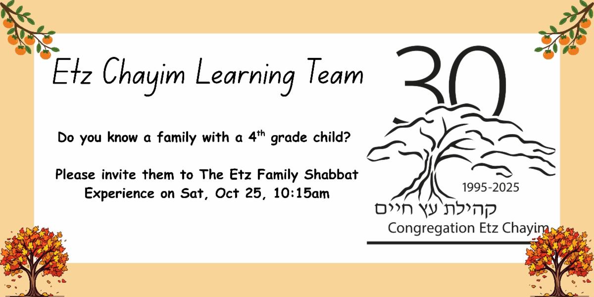 Sat, Oct 25 | The Etz Family Shabbat experience. Please invite a friend!