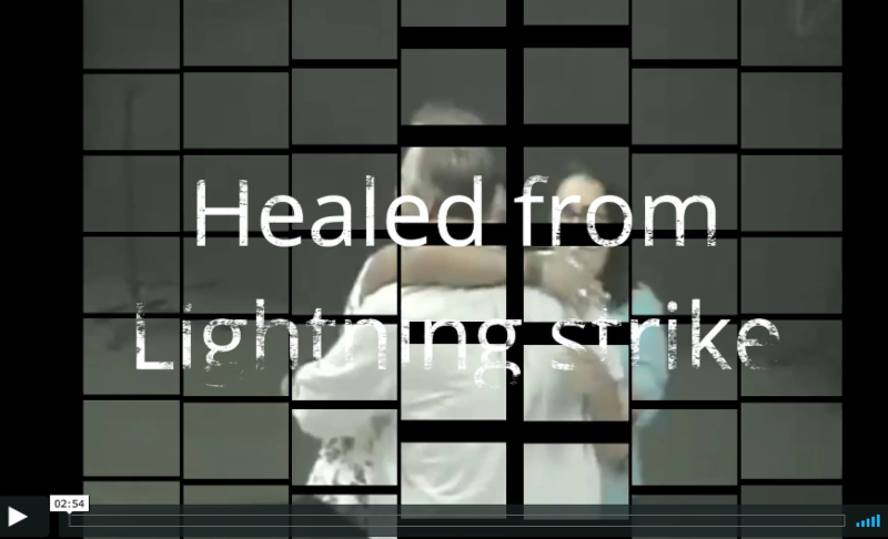 Above Photo: The woman on the right is sharing her healing testimony from a lightning strike...