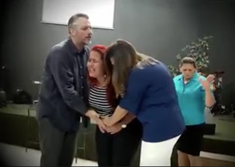 Below is a short video clip from the church's camera that recorded the moment she was prayed for (at the 40 second mark) and her testimony afterwards. Click on the link below.