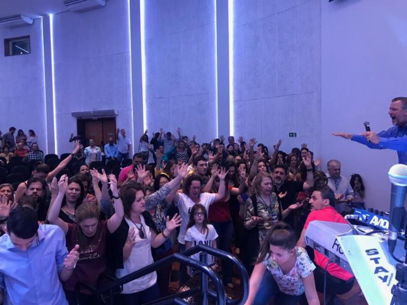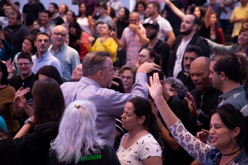 SOZO MOUNTAIN video for the children's home project here in Brazil. We then asked anyone who had a call to work with children to come forward. Hundreds responded and came to the altar. It was standing room only, packed to capacity! We cried out in intercession for the children of Brazil and then directed p