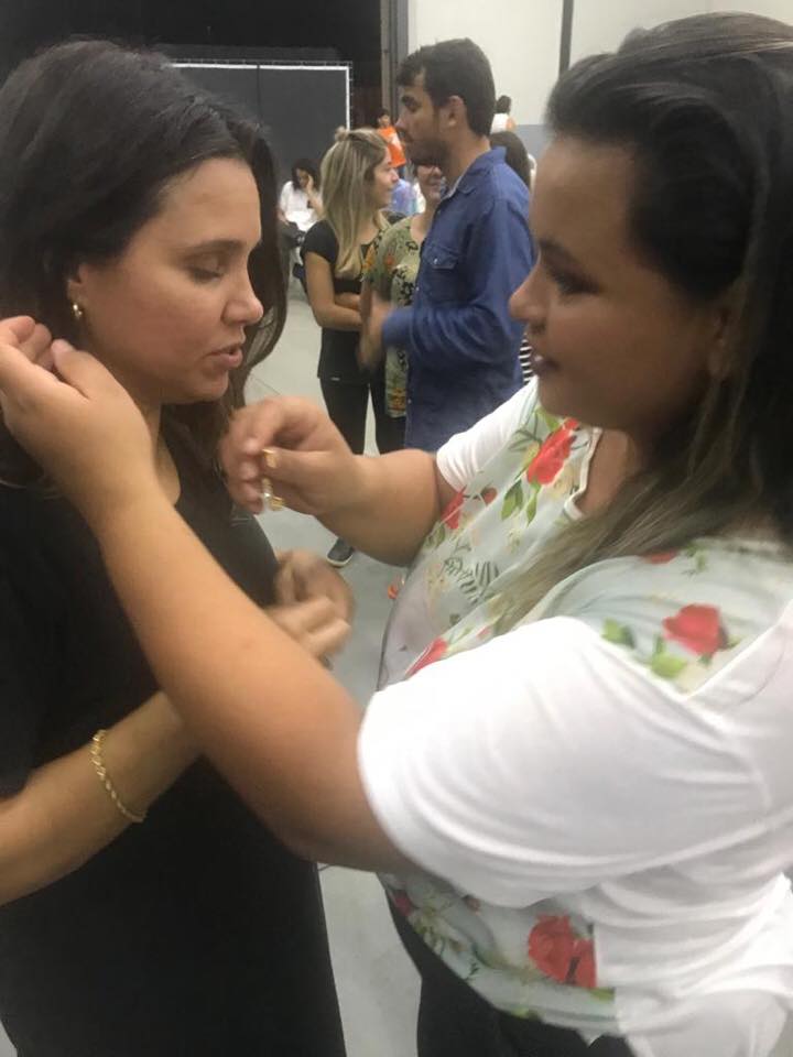 the foot. At that moment she believed it was for her and her foot began to vibrate. She realized she was healed as all pain left and her foot had full freedom of movement. In this picture, she came the next night in high heals and gave Débora her favorite pair of earrings. Explaining that she didn't have money, but this was the best way she could convey her appreciation and thankfulness to God for her completed healing.