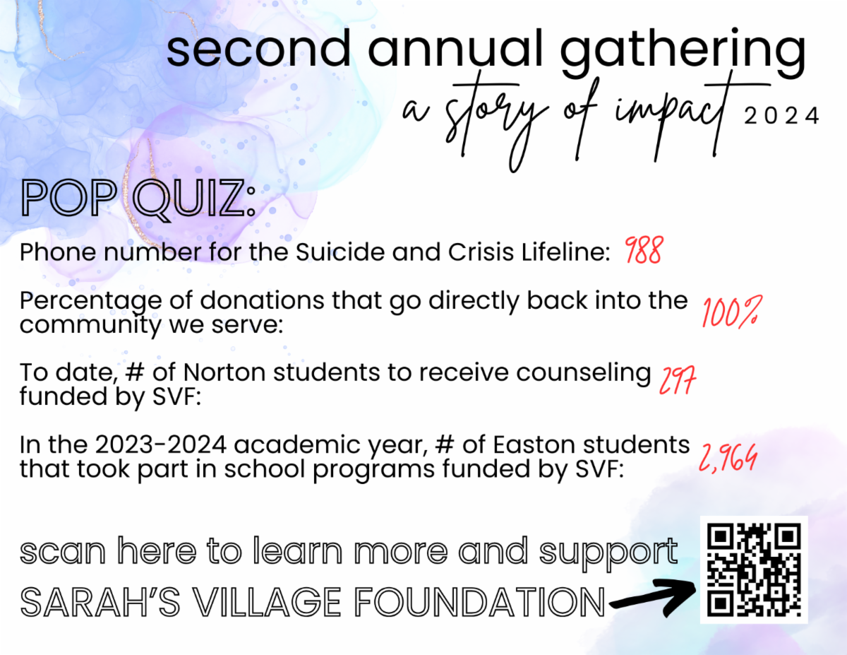 We are thrilled to report the impact in our communities is continuing to grow. Since the Foundation began, we've raised over $250,000 to put directly back into the cause. Your support is critical to our mission and thanks to you, every day we are able to continue to be kind and help others in honor of Sarah. If you weren't able to join us for the evening but would still like to support, you can donate here.