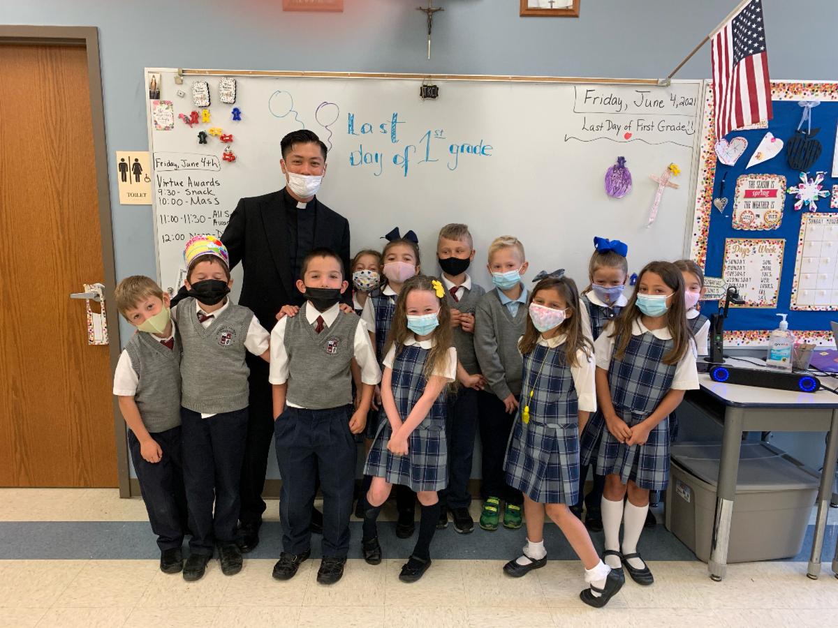 The last days of First grade were so much fun! The students had an awesome time at Field Day and today, Fr. Jason stopped by to wish the students a happy summer! Great job First graders!