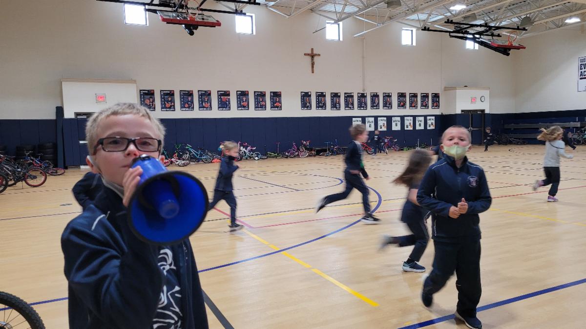 2nd grader Sean, got to be Mr. Gath, our gym teacher, for the day! He had a lot of fun teaching his class last week!
