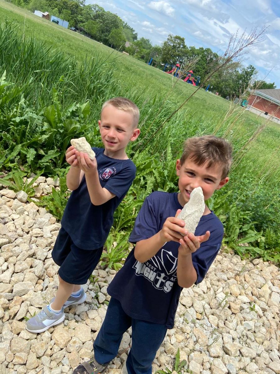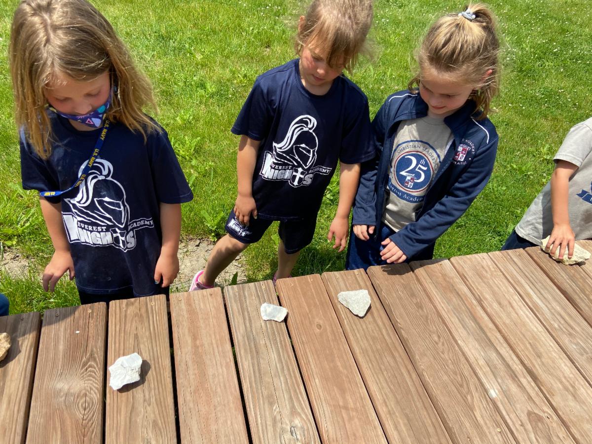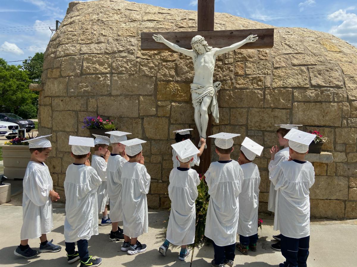 In science this week, the Kindergarten class learned about rocks. They also took cute pictures in their caps and gowns and prayed at the Grotto for God to bless our next school year!