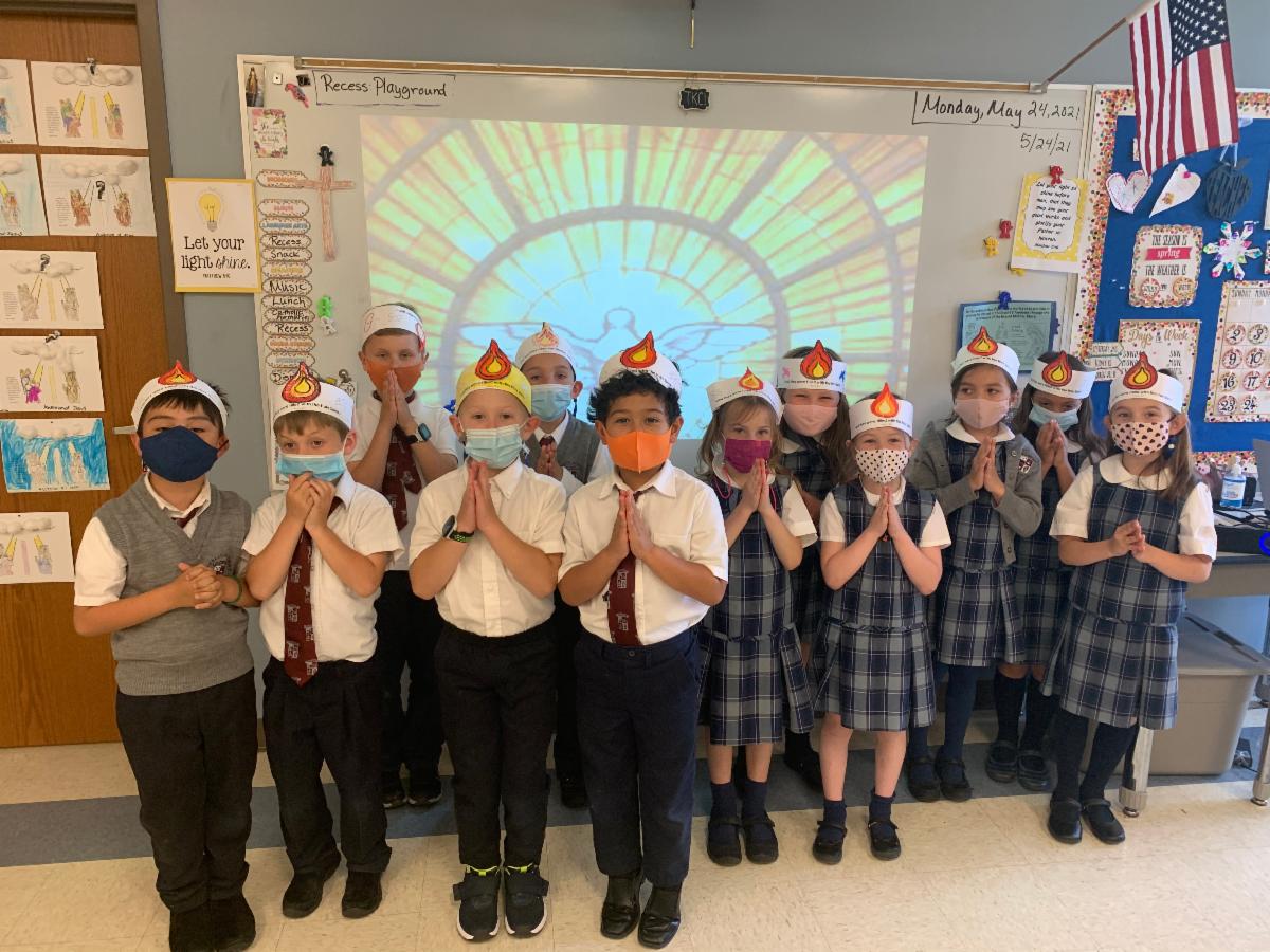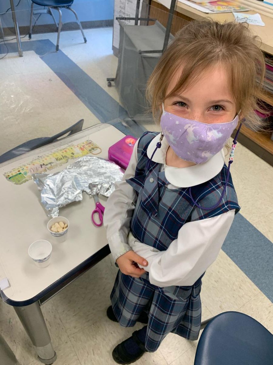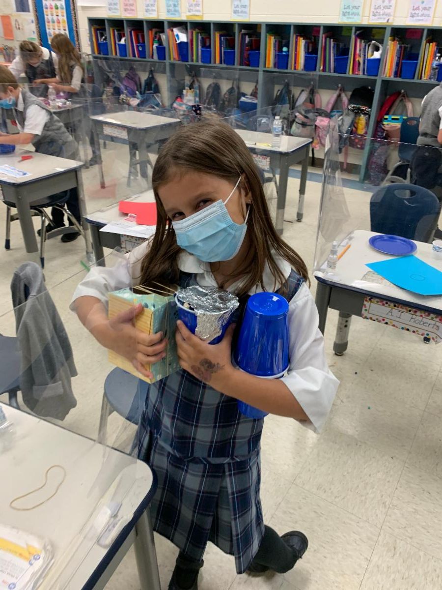 This week, the first graders made musical instruments as a culmination of their unit on sound. In math class, they learned how to divide by 2 and during Catholic Formation, they leaned about the Holy Spirit!