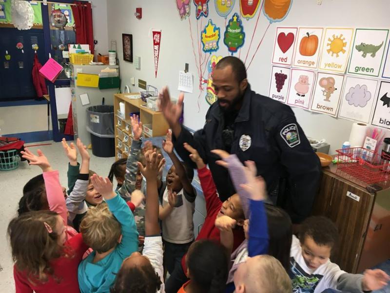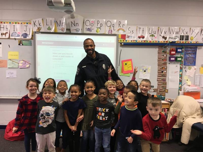 After a recent Active Threat Drill, Officer Tommy Foy stopped into Ms. Roltgen's classroom at Bird Elementary to see how the class was feeling. Many students expressed concern and Officer Tommy reassured them that it was a practice and he was there to make everyone feel safe. Before he left, many students wanted to give Officer Tommy a high five and a hug. He could barely leave since everyone loves seeing him in the classroom! Officer Tommy told everyone to "bring it in". All hands went in the middle of the circle on top of his. He said on three we say school. " 1, 2, 3 School!" Ms. Roltgen wants to thank Officer Foy for helping reassure her kiddos that we are all here together to make everyone as safe as possible.