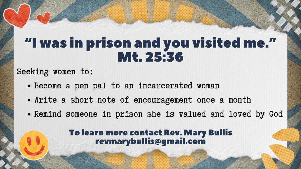We are seeking women to be pen pals to incarcerated women at the Perryville State Prison in Buckeye.  The commitment is simple: one short note, card, or letter per month. Just a few words of encouragement, prayer, or Scripture can remind someone behind prison walls that they are seen, valued, and not forgotten by God. Training will be provided.