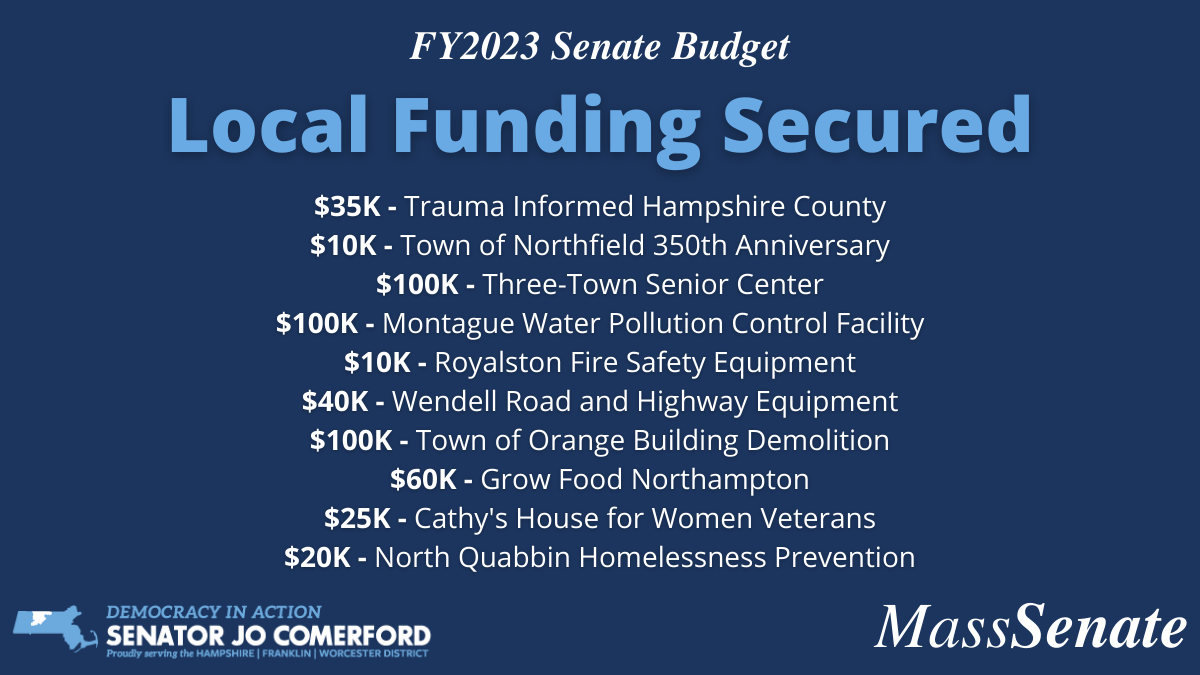 To crack open state funding for our communities, District Director Elena Cohen worked in partnership with Regional Planning Agencies, Rep. Natalie Blais, western Massachusetts Senators, and state colleagues to organize a pretty fabulous series of information sessions. They’re still ongoing and we’ve recorded all of them. You can find all the information here.