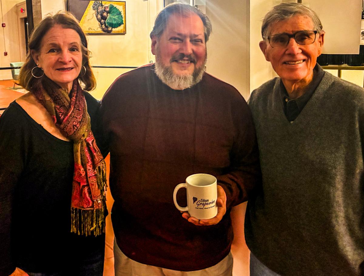 Tifton Grapevine subscribers Moppy and Mike Brumby receive a Tifton Grapevine mug from Publisher & Editor Frank Sayles Jr., at center. The Brumby's names were drawn from among those who have recently donated to the Grapevine in support of local journalism. While the Tifton Grapevine news may be free, journalism is not. If you enjoy reading the Grapevine, please consider donating to keep local journalism alive. Any amount is appreciated.