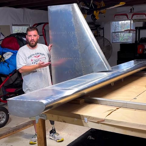 Brandon, who lost a leg in Iraq while serving in the military, is building himself a Zenith STOL CH 750 Super Duty airplane. Brandon has been documenting and sharing his build on social media: "Every rivet brings this build one step closer to flight... the dream’s taking shape right here in the hangar..."