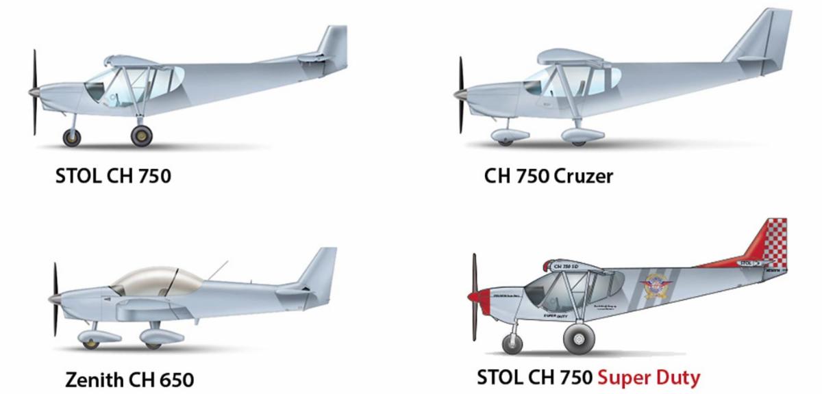 | | A decade later, Zenith introduced the CH 750 Cruzer, a faster “on-airport” companion to the original STOL version. All CH 750 models share a roomy side-by-side cabin, excellent visibility, responsive handling, and durable tricycle-gear configuration - features that make them ideal for recreational sport pilots. | | It is important to note that increasing the weight and/or speed of any aircraft decreases its strength (under load, weight or aerodynamic) and that builders, owners and pilots need to respect all of the design limitations of the aircraft. | | The newest CH 750 variant is the STOL CH 750 Super Duty, which now falls under the new definition of a Light Sport Aircraft despite its 1,900 lbs gross weight. It features a rear third jump seat, bigger wheels and increased load carrying capability thanks to larger wings and more power. | | |