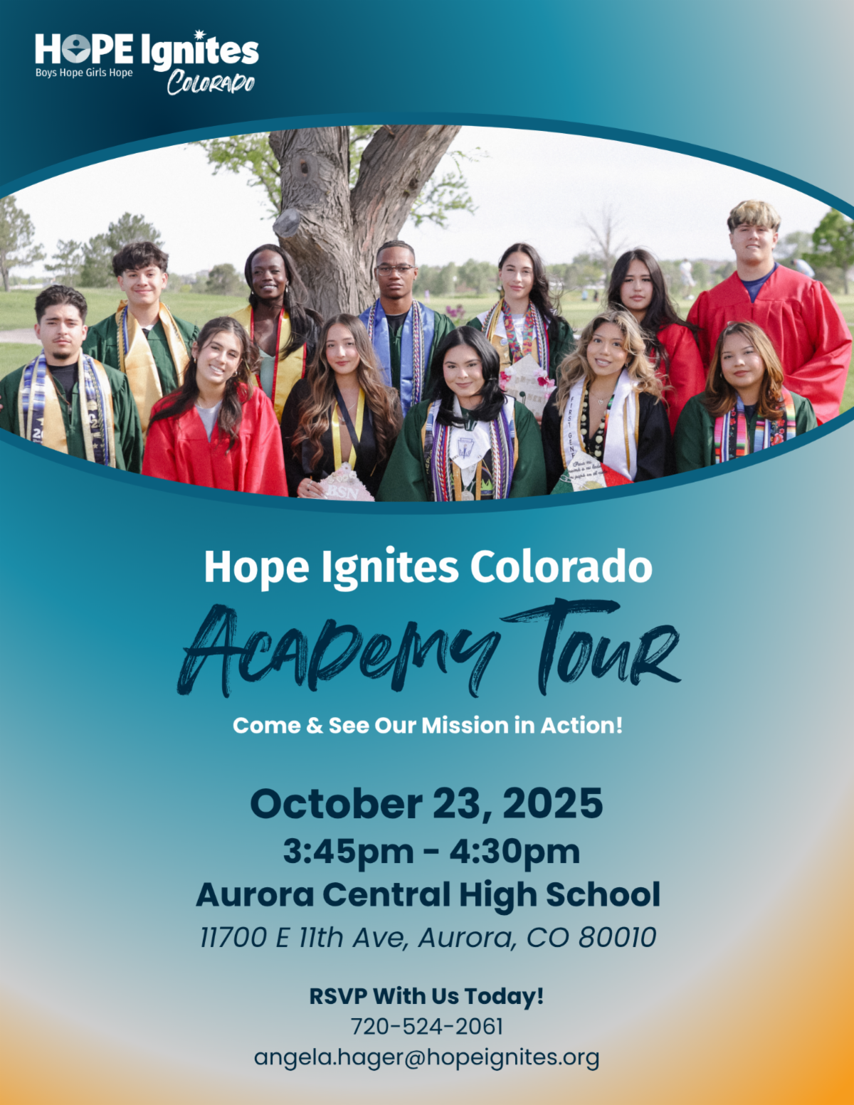 Our program featured our new video (shown above) as well as Regis Jesuit Senior and Hope Ignites Colorado Scholar Tadia as our key speaker!