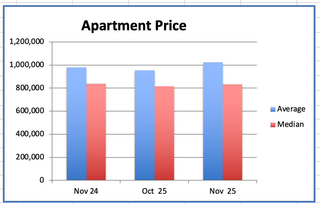 The Apartment average price was $1024K, down 15% from $1.199M, the peak, in January 2018.