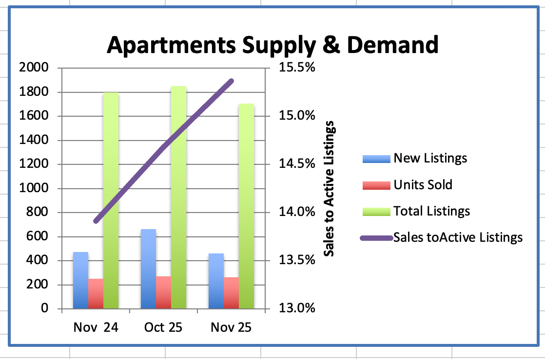We had 262 Westside Apartment sales in November, down 4% compared to 272 sales last month.