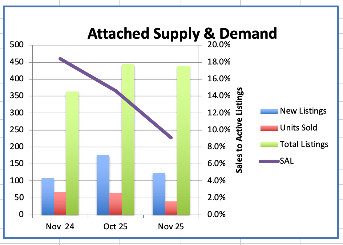 We had 40 Westside Attached home sales in November, down 39% compared to 65 sales last month.