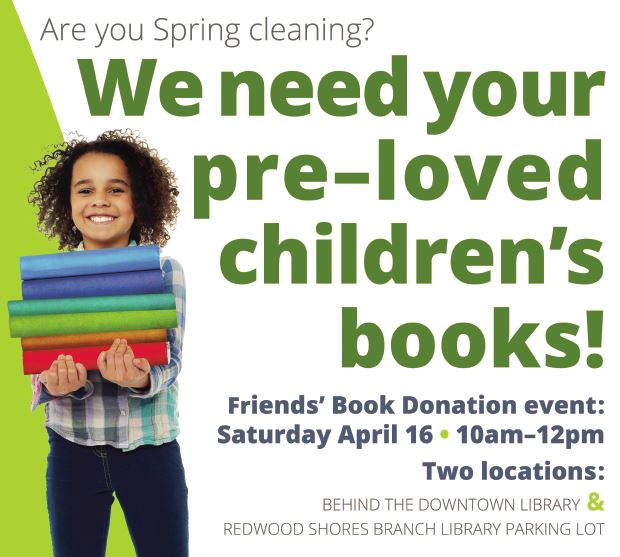 Are you Spring cleaning? Friends of the Redwood City Public Library need your pre-loved children’s books!
