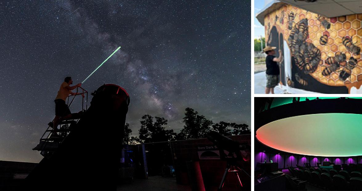 The world beneath our feet and over our heads is a place of wonder. Come explore the natural world we live in at the Mayland Earth to Sky Park, located halfway between Burnsville and Spruce Pine. Home of the Bare Dark Sky Observatory and Glenn & Carol Arthur Planetarium, and soon to be Children’s Discovery Center, the International Dark Sky certified park offers an educational experience for all ages. Peer through the largest public telescope in North Carolina, learn about Earth’s ecosystems, enjoy a picnic, and get up close and personal with Matt Willey’s newest “Good of the Hive” honeybee mural.