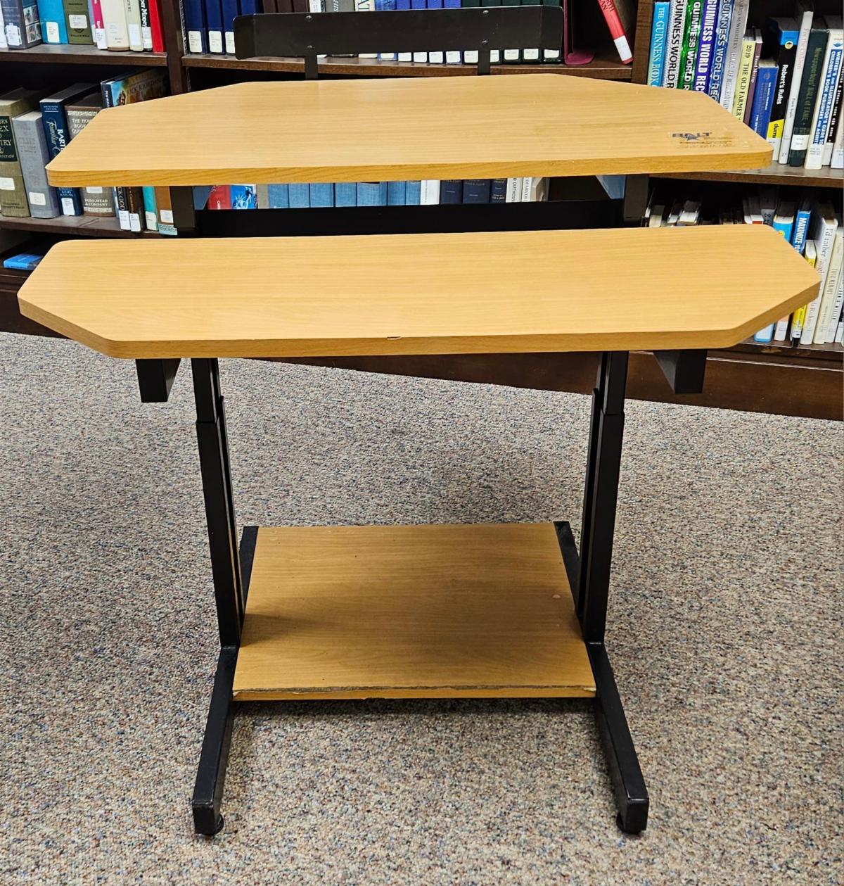 | Computer Workstations for Sale | We have two very Sturdy Laminate; Adjustable Height Computer work stations for sale $25.00 each if interested contact Cory @Library. 231-856-4298. |