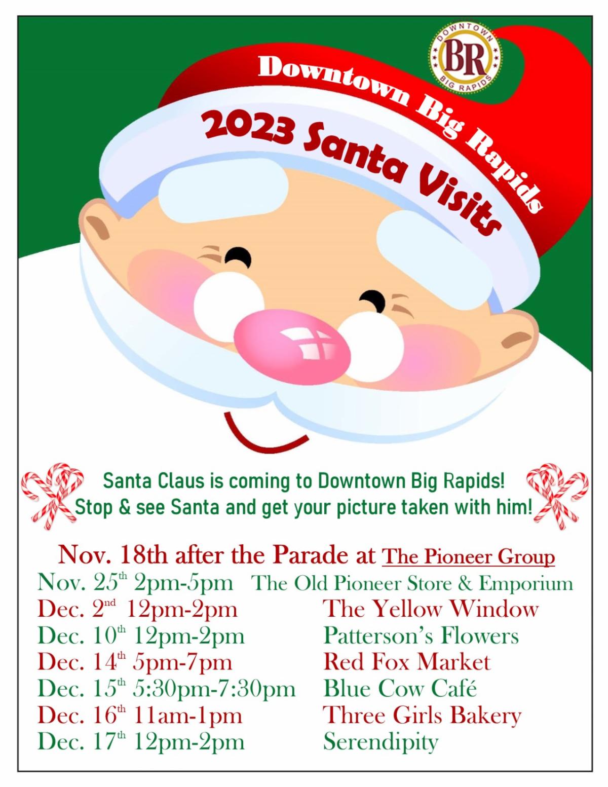 Downtown Big Rapids Santa Visits are Back! Here is 2023's Schedule: