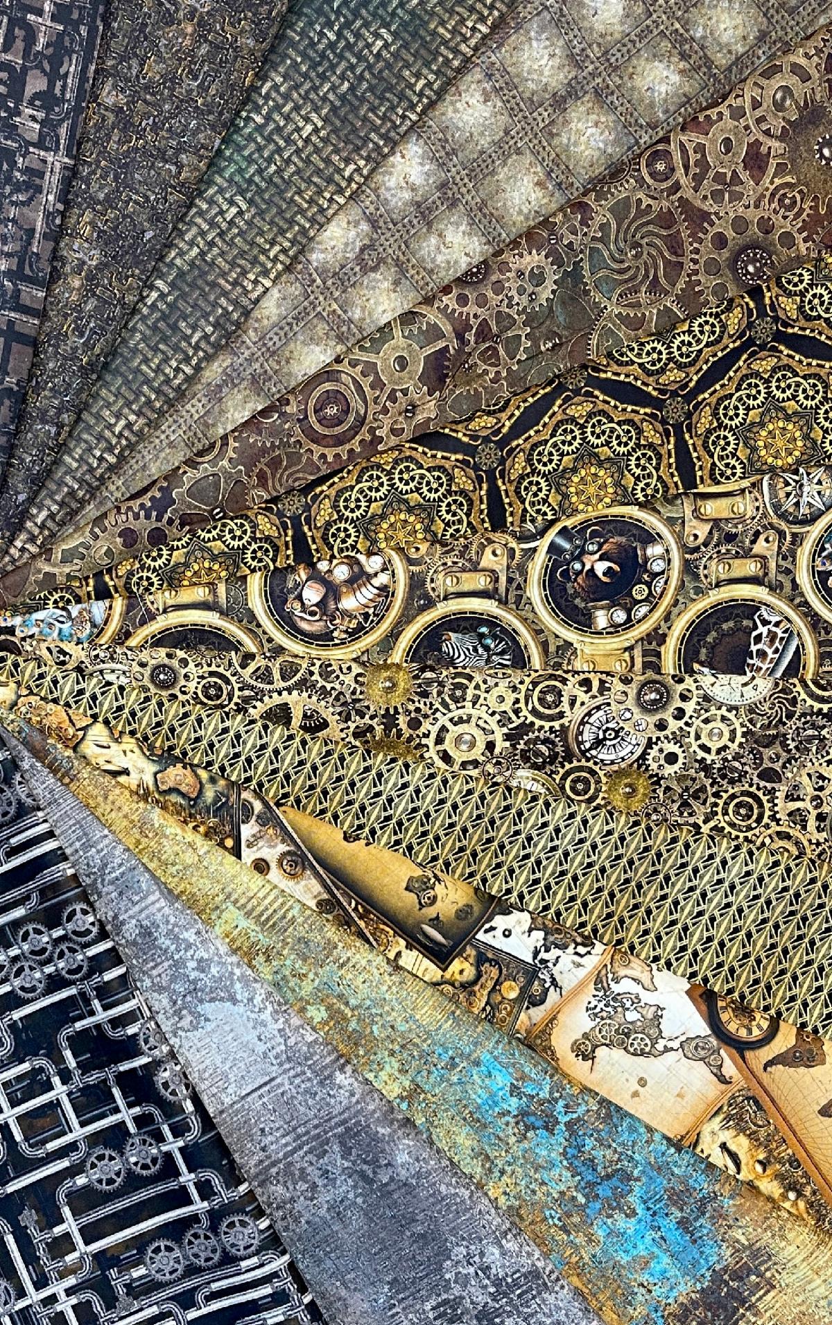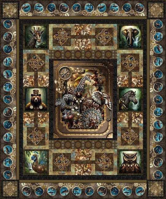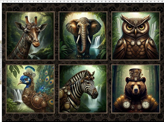 What do you think of the Steampunk fabric? Maybe you're like me and you're not quite sure what "steampunk" means. The definition I found is: "a subgenre of science fiction and a retrofuturistic subculture that blends 19th-century Victorian-era aesthetics with steam-powered technology." I was pretty sure it's a retrofuturistic subculture but my extensive research confirmed it. Another way to define it would be a bunch of animals driven by gears, pulleys and mechanical devices - which sounds weird. For what it is worth, I think this is my new favourite fabric.