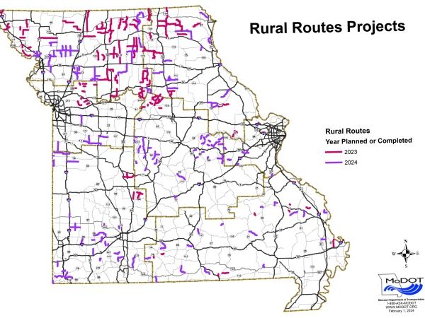 At its monthly meeting on March 6, the Missouri Highways & Transportation Commission awarded three projects for rural roads, the final projects awarded in the Governor’s Rural Routes Program. The program, created with Gov. Mike Parson’s signing of the fiscal year 2024 state budget, allocated $100 million of General Revenue funds to the Missouri Department of Transportation to improve low-volume rural roads across the state.