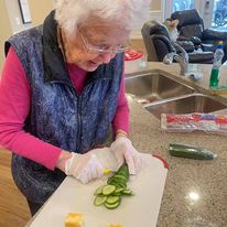 Elders in our homes live with a sense of purpose everyday as our staff include them in daily activities. There is so much joy to be found in contributing to the meals for yourself and your friends and it is no different for the ExquisiCare family.