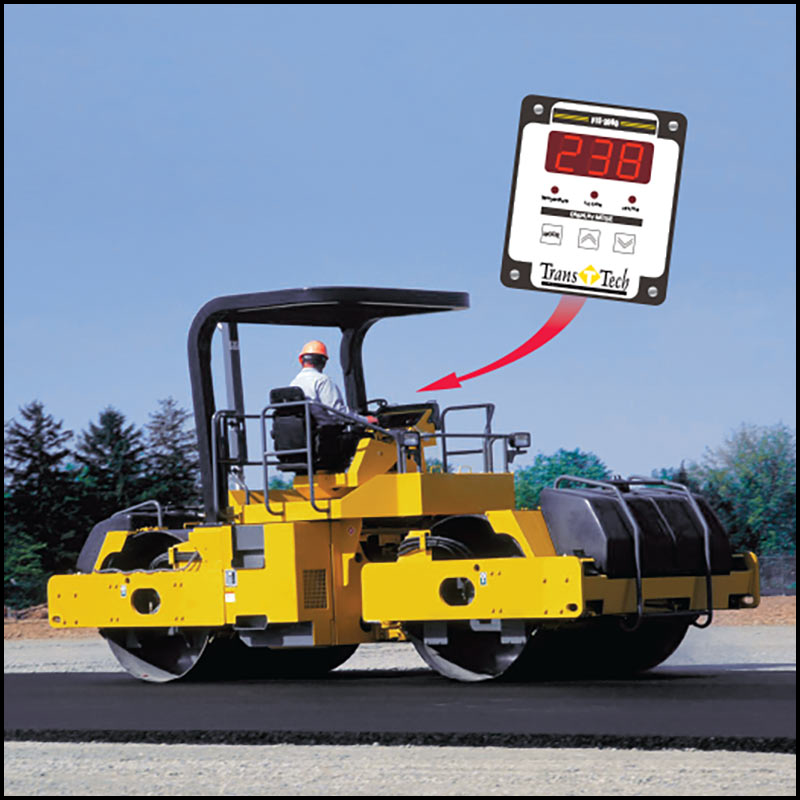 The PTS 3000 was designed and built to provide accurate HMA mat temperatures on the run. Mounted at the roller operator station, the bright red LED display gives continuous, consistent and accurate temperature readings while the roller is running.