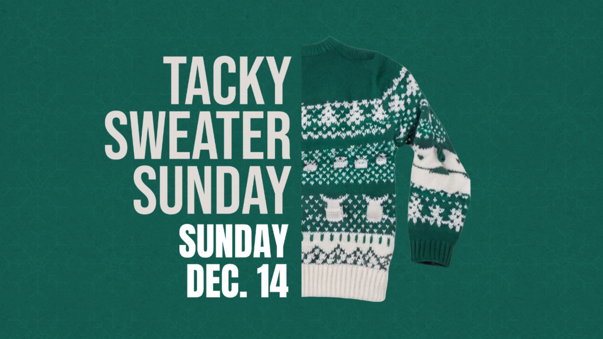 Get ready for one of the most joyful Sundays of the year! On Sunday, December 14, we’re celebrating Carols & Worship Sunday—and yes, it’s also Tacky Sweater Sunday at both services! Pull out your brightest, boldest, most wonderfully tacky Christmas sweater and come ready to sing your favorite Christmas carols with your church family.