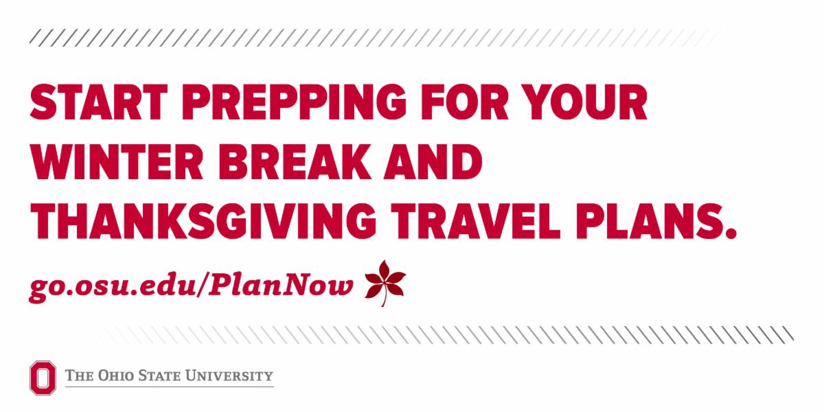 As we enter the last few weeks of the semester, it’s important for you to start prepping now for your Thanksgiving and Winter Break plans. Reduce your chances of bringing COVID-19 home to your friends and family by getting a COVID-19 test before leaving campus. Whether you live on or off-campus there are tips and steps you can follow to start your break off in a safe and healthy way.