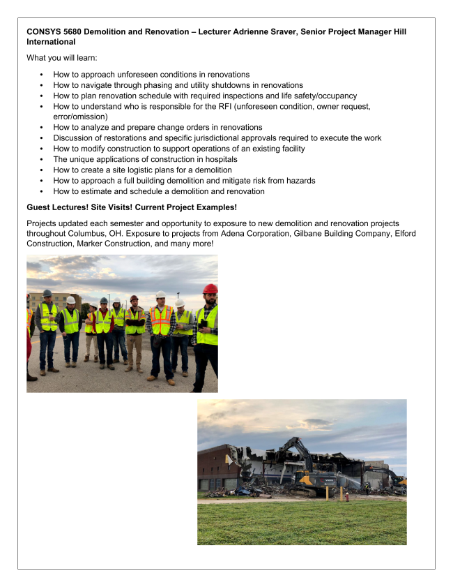 Degrees to pass along to: Construction Management, Civil / Mech. / Elect. Engineering, Architectural Engineering, Construction Finance, or similar