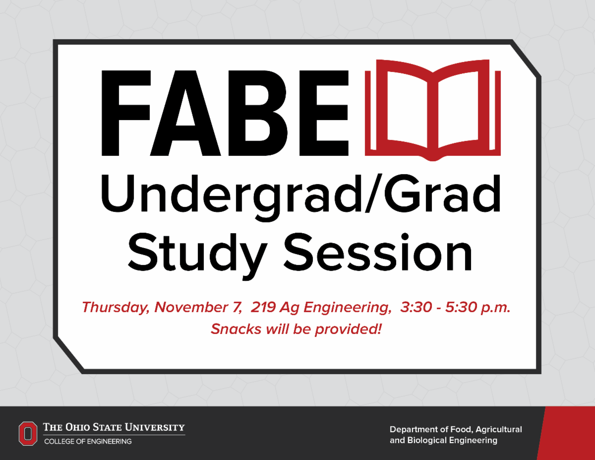 Come study and enjoy some snacks with your fellow FABE majors and FABE graduate students on Thursday, November 7th!