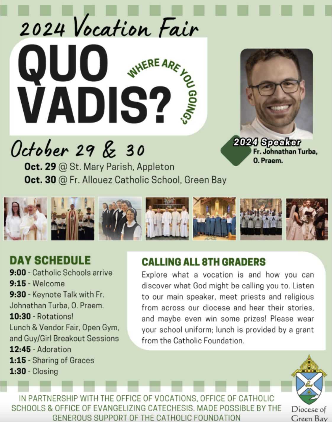 On the 30th Resurrection Campus will be hosting the Diocese-wide Vocations Fair. During this time, 8th grade students from all over the Diocese will be coming to learn about what a vocation is and “how you can discover what God might be calling you to.” While our 8th graders are engaging in this wonderful opportunity, our students in grades 5-7 will be on a team building field trip in Door County. Needless to say, there is a lot happening next Wednesday!