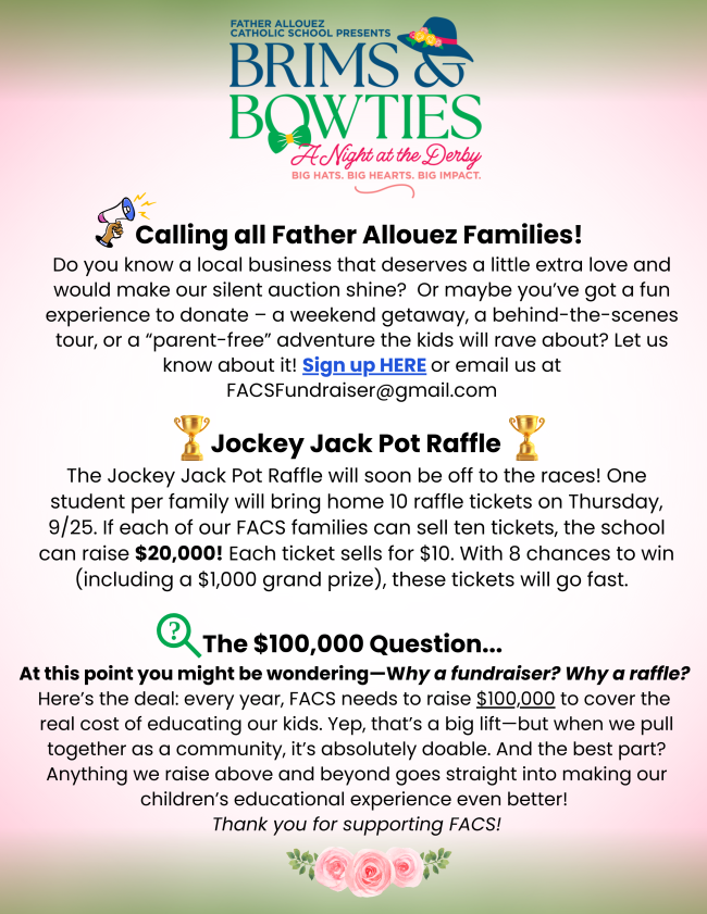 Do you have a passion for a particular idea or area of expertise or interest that you would like to consider sharing with our students? Father Allouez Catholic School is looking for volunteers to lead after school clubs and activities! Ideas that have been discussed include Lego Robotics (STREAM), Weaving/Handcrafting, and a few others. If you are feeling called to lend your time and talent to these or other ideas, please reach out to Mr. Dempsey at fdempsey@gracesystem.org