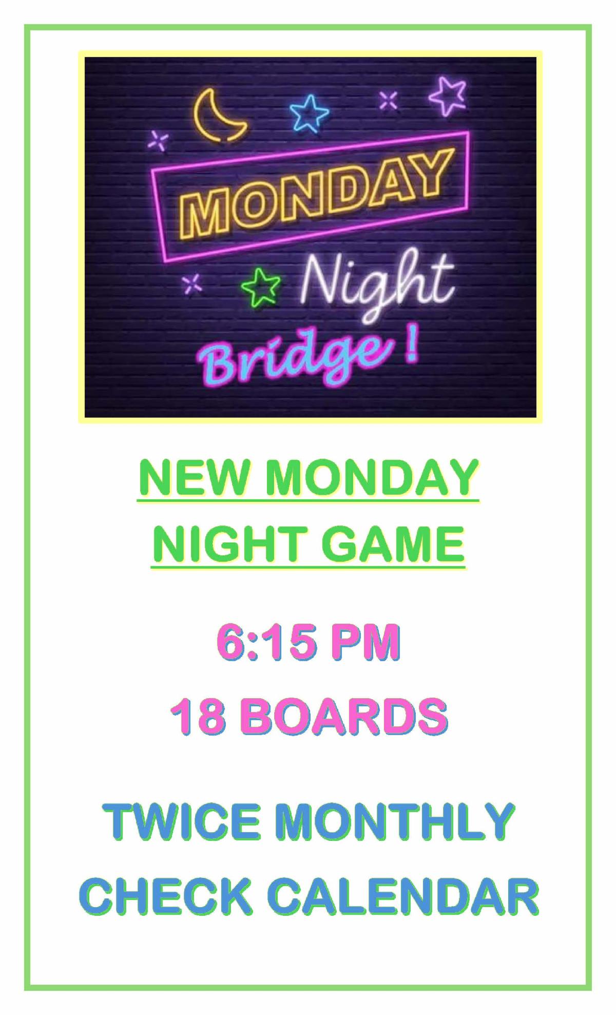 Beginning on the 2nd and 4th Monday nights, first game tomorrow, the 8th of September! A great time to play if you cannot make our day games…or in addition too! 18 boards starting at 6:15 P.M
