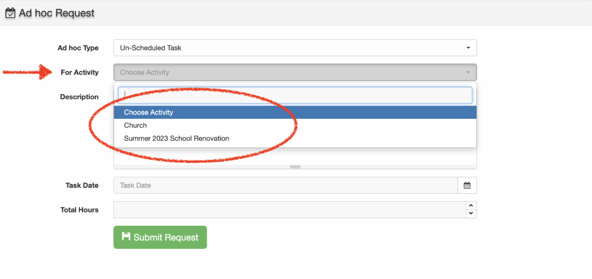 A: Submit them under the Ad Hoc option. Include a brief description of the task.