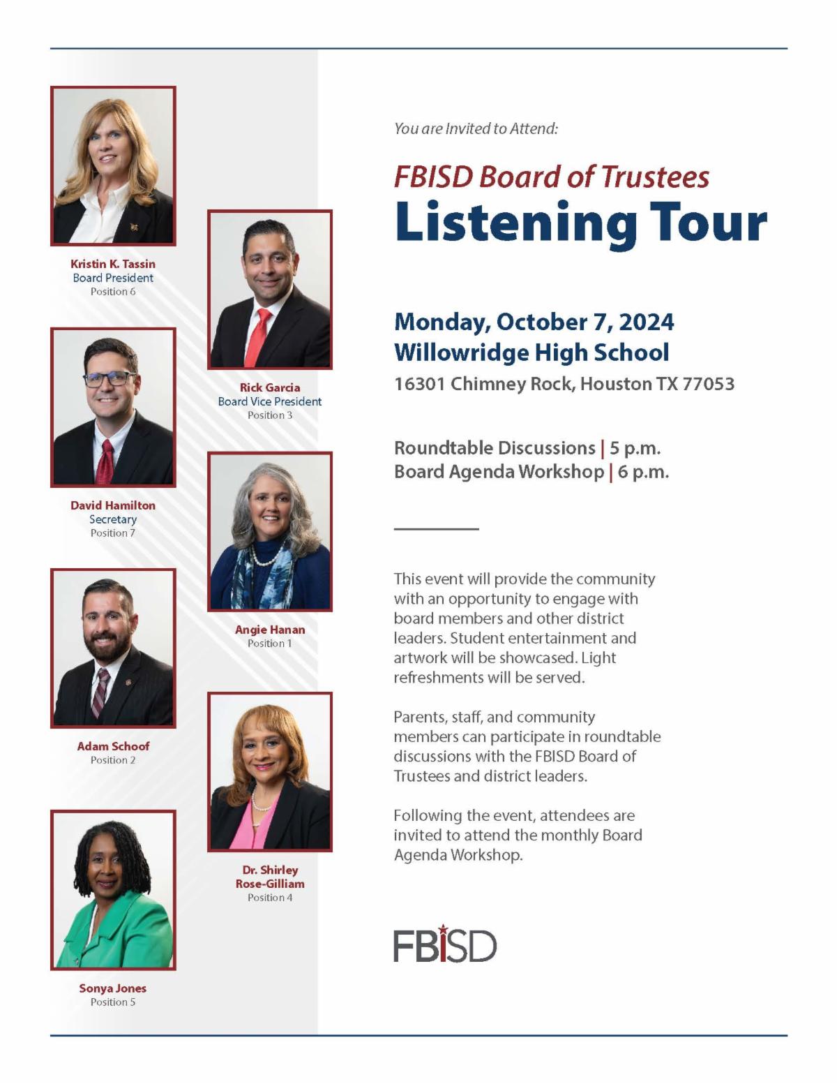 Once the deadline for nominations has closed, a naming committee will consider the nominations prior to a recommendation to the FBISD Board of Trustees.