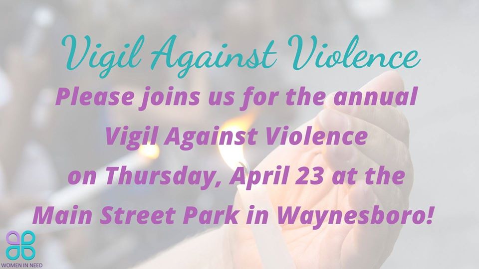 The annual Vigil Against Violence, hosted by Women In Need, will take place on Thursday, April 23 at Main Street Park in Waynesboro. The event will start at 6:30 p.m. Please save the date on your calendar and stay tuned for more details to come!