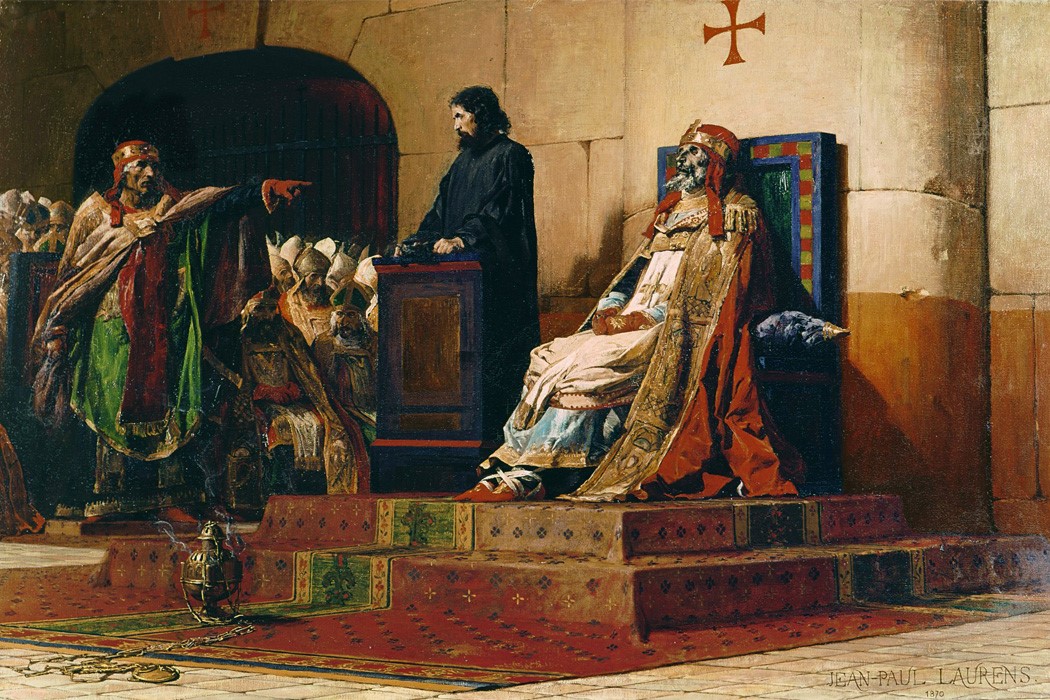 The year is 897, and the accused sites motionless upon a throne in Rome's Basilica of Saint John Lateran. He is dressed in papal vestments and a crown rests upon his head. A jury of Cardinals is present to hear the accusations brought by Pope Stephen VI. The accused does not answer any of the many charges leveled against him by the often ranting and screaming pope. At the conclusion of the Pope's case he asks that the accused be convicted and the Cardinal's acquiesce unanimously by acclimation. The sentence is swiftly carried out and he is stripped of his papal vestments. The three fingers the accused used to offer the blessings of the Church are hacked from his right hand. He is then dragged to the Tiber River and thrown in. His name is Pope Formosus, and he bears this abuse without complaint, likely because he died of a stroke nine months before his trial. Pope Stephen VI removed his predecessor's corpse from its vault below St. Peter's Basilica and subjected it to this most unusual of trials. In the end it would cost him far more than his hated rival.
