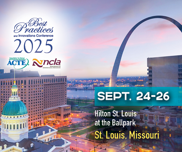 Mark your calendars for the Best Practices and Innovations in CTE Conference 2025, taking place Sept. 24–26 at the Hilton St. Louis at the Ballpark in St. Louis, Missouri. Hosted by ACTE and the National Council of Local Administrators, this event offers cutting-edge strategies, innovative solutions and best practices designed to support CTE educators.