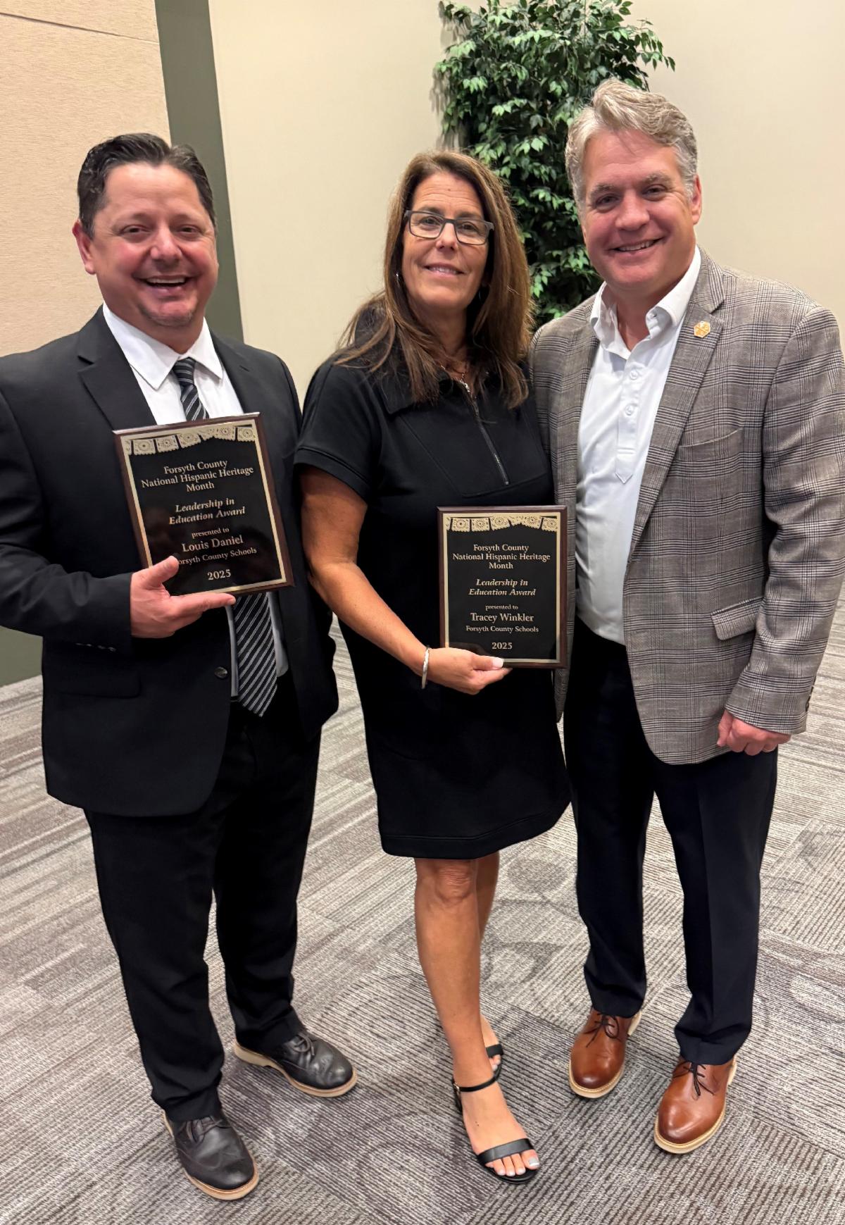 Forsyth Central High School Principal, Tracey Winkler, and Assistant Principal Louis Daniel were recently honored during the 2025 Hispanic Heritage Month Leadership Awards. Winkler and Daniel were recognized for their exemplary work. On hand to celebrate alongside these two leaders was Forsyth County School’s superintendent Dr. Mitch Young.
