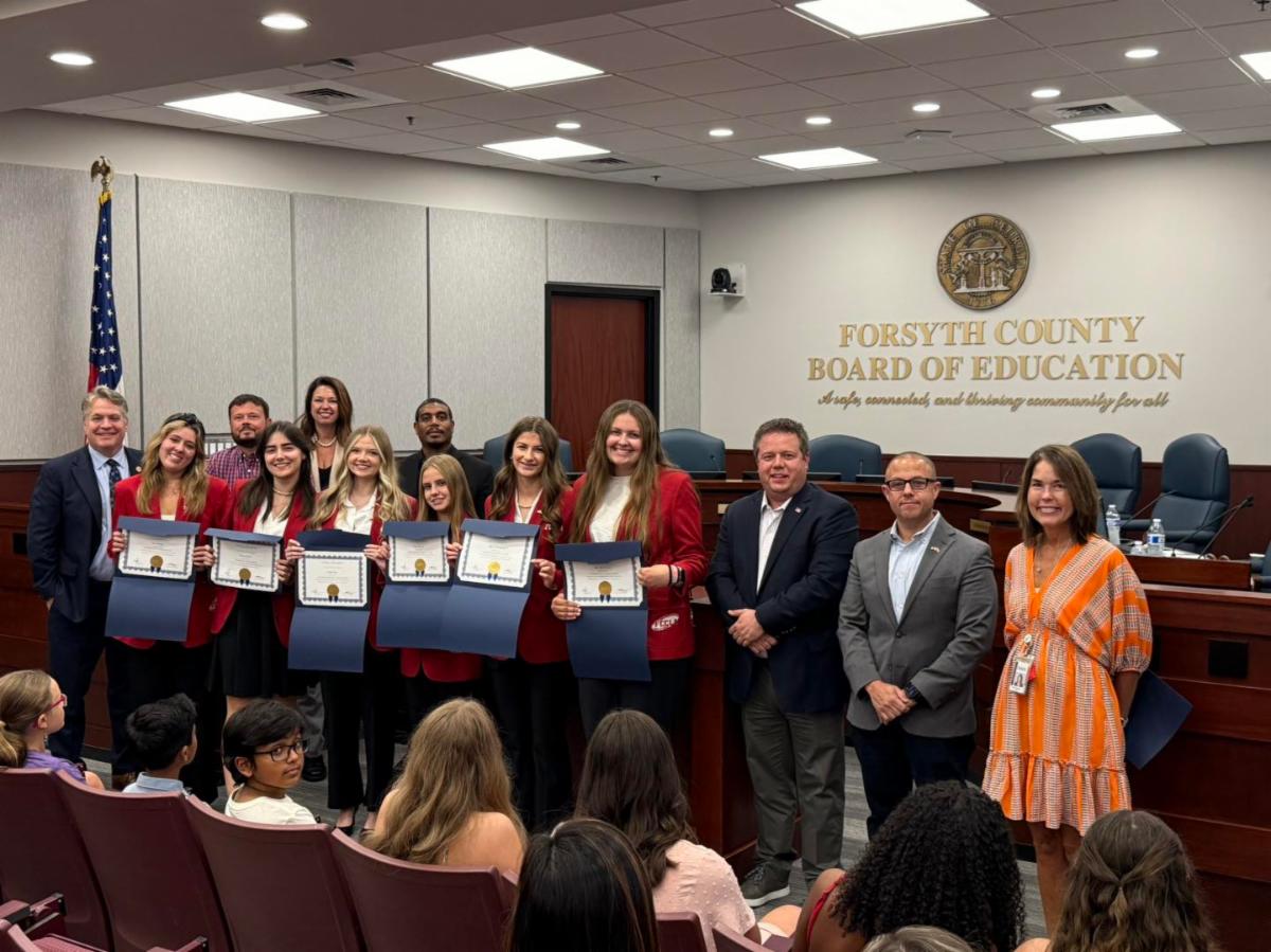 Both North Forsyth and East Forsyth High School FCCLA chapters were recognized by the Board of Education for their accomplishments at the National FCCLA Conference this summer. FCCLA promotes personal growth and leadership development through Family and Consumer Sciences. Congratulations to both teams!