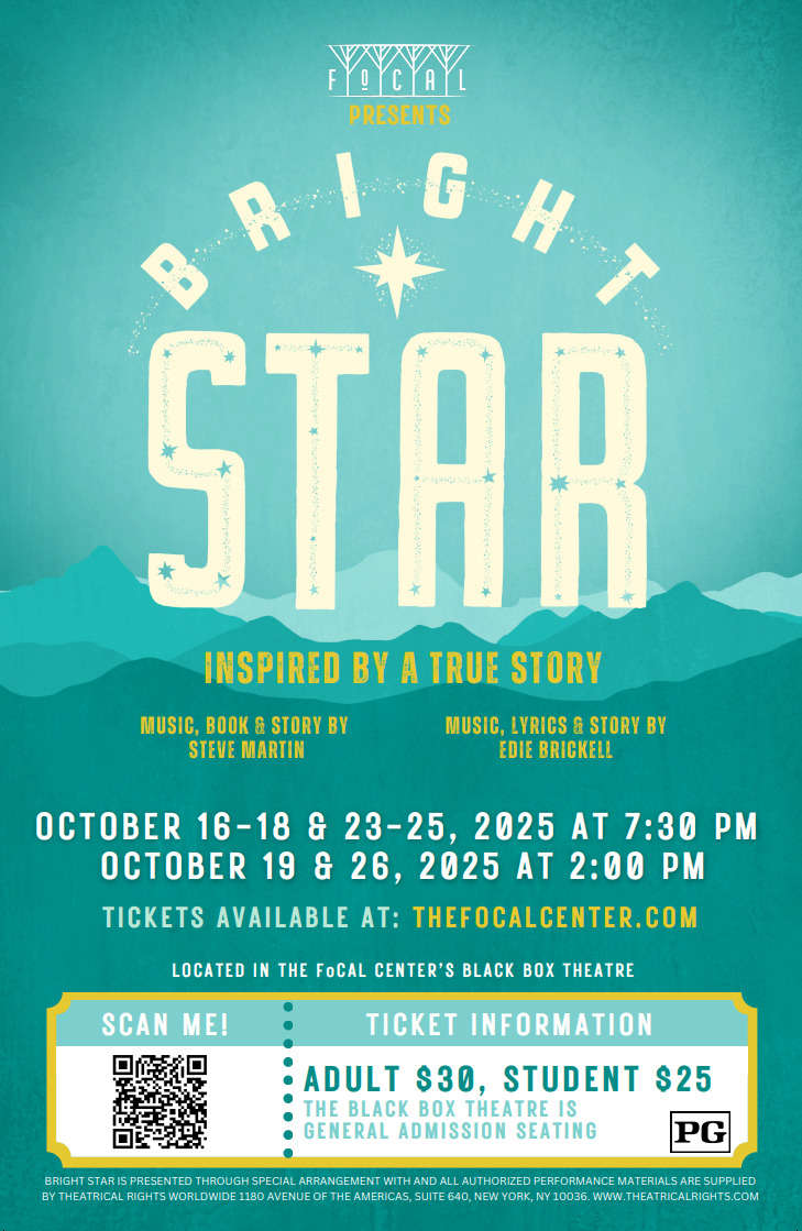 Head out to the FoCAL Center beginning October 16th to see Bright Star in the Black Box Theater. The show features three Forsyth County Schools teachers and several student alumni. It is inspired by a true story and is one not to be missed.